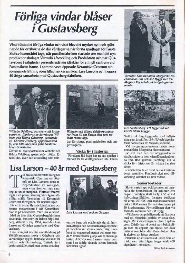”Mina föräldrar var dom första som arrenderade stället. Föregångaren, Cedergrund, var anställd av Gustavsbergs fabriker. Vid sidan av slottet har jag sett från foton att det fanns ett växthus, av det fanns bara lite murar kvar när jag bodde där. Av det gamla pannrummet gjorde min pappa och jag en keramikverkstad efter att vi gått en keramikkurs tillsammans på Kattholmen. Det blev starten för min väg som keramiker.