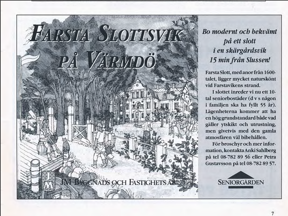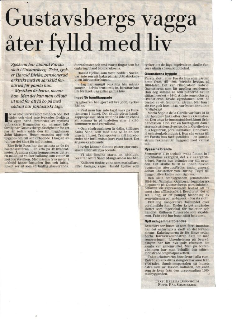 Lars Cedergrund berättar i skriften: Farsta Trädgård – Farsta Slott med omgivningar Gustavsberg och Värmdö kommun.